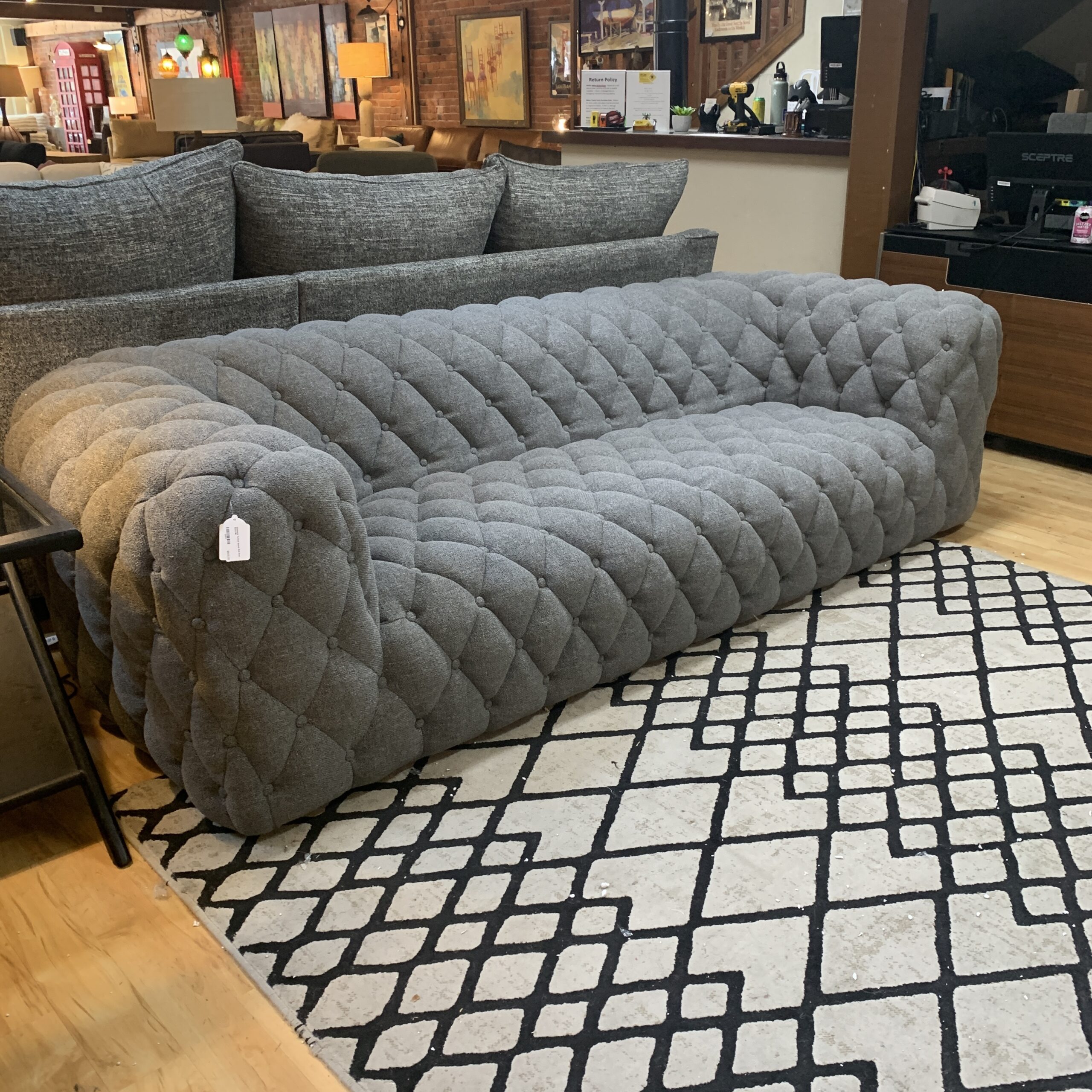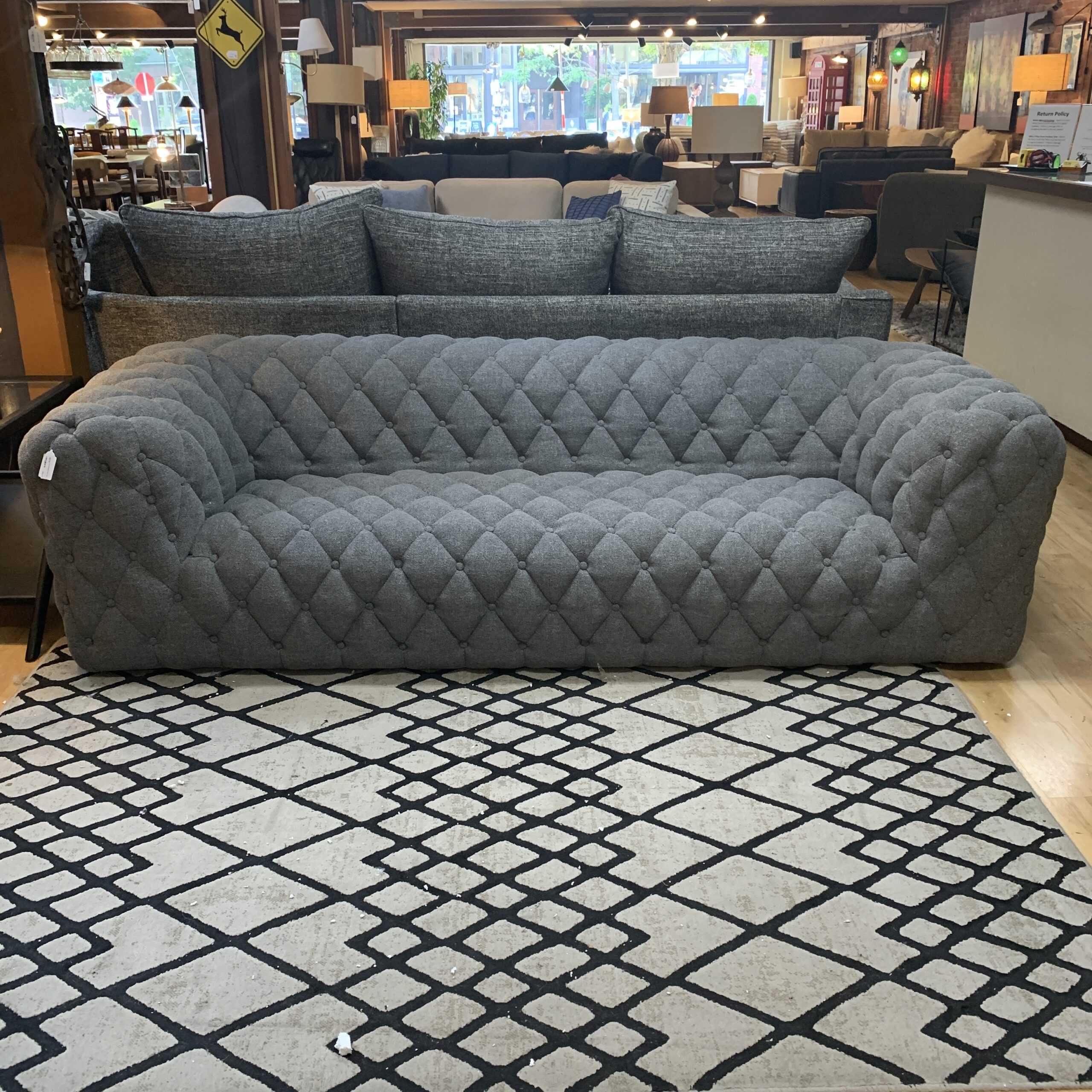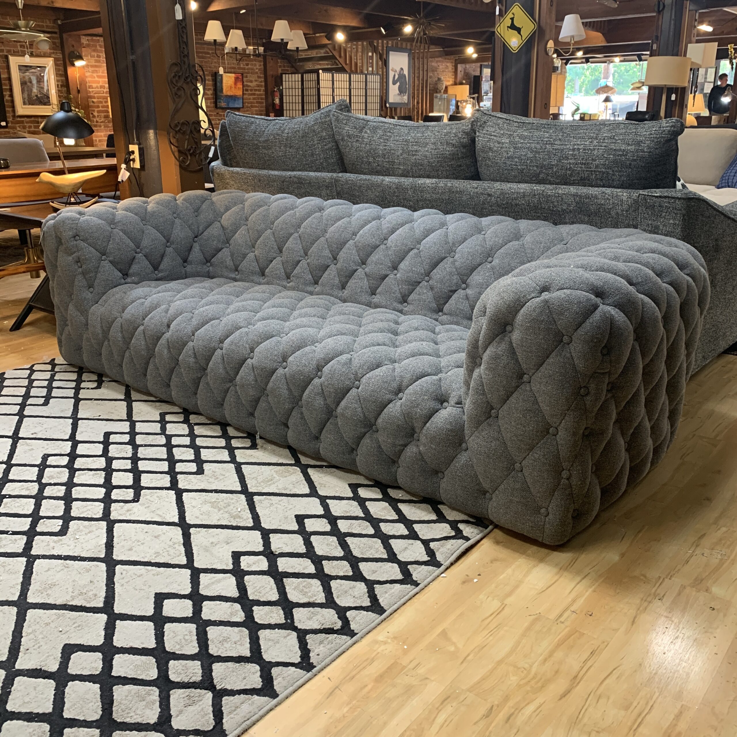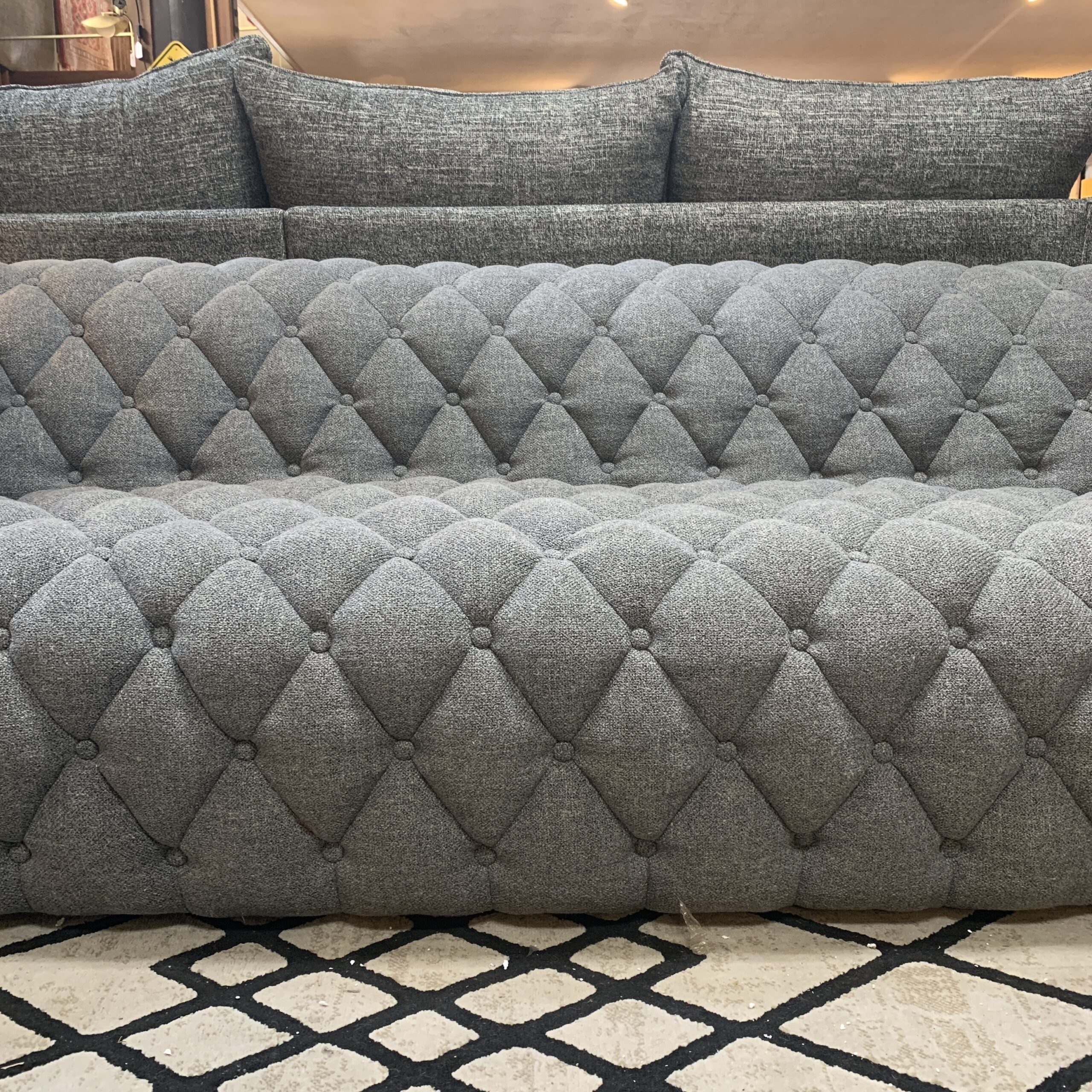 Diamond Tufted Stone Roll Arm Sofa